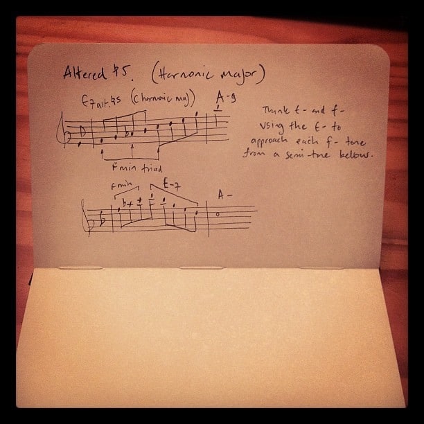 It works in the same way that the altered scale works, but it has a natural 5th. And so I usually call it, ‘altered natural fifth’. It’s not very catchy, is it? I guess that’s why you get blank looks when you mention Harmonic Major.